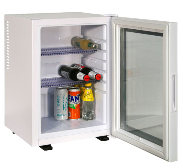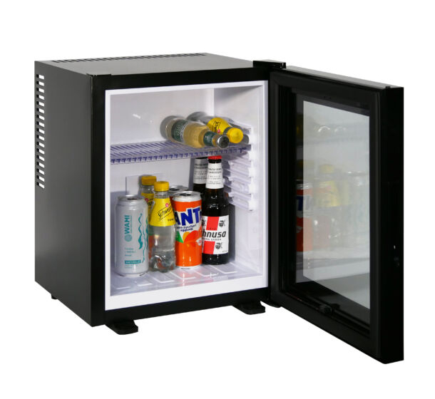 I frigobar a compressore offrono numerosi vantaggi. Uno dei principali e innegabili vantaggi di questo tipo di apparecchiatura è una temperatura di raffreddamento inferiore rispetto ai classici minibar, e le loro dimensioni ridotte ne consentono una facile installazione in spazi ristretti, come camere d'albergo, uffici e persino in spazi ridotti. A causa del loro livello di rumorosità, leggermente superiore a 0 dB, i minibar a compressore non sono consigliati per le camere da letto. Un minibar a compressore funziona in modo simile a un normale frigorifero domestico: un piccolo compressore funziona al suo interno e un refrigerante (100% ecologico) circola nella serpentina: R600a/R134a. Il refrigerante viene riscaldato da uno speciale elemento riscaldante a una temperatura specifica, provocandone l'ebollizione in un vuoto spinto, che rimuove il calore dall'acqua raffreddata che circola attraverso i tubi dello scambiatore di calore, raffreddandola.