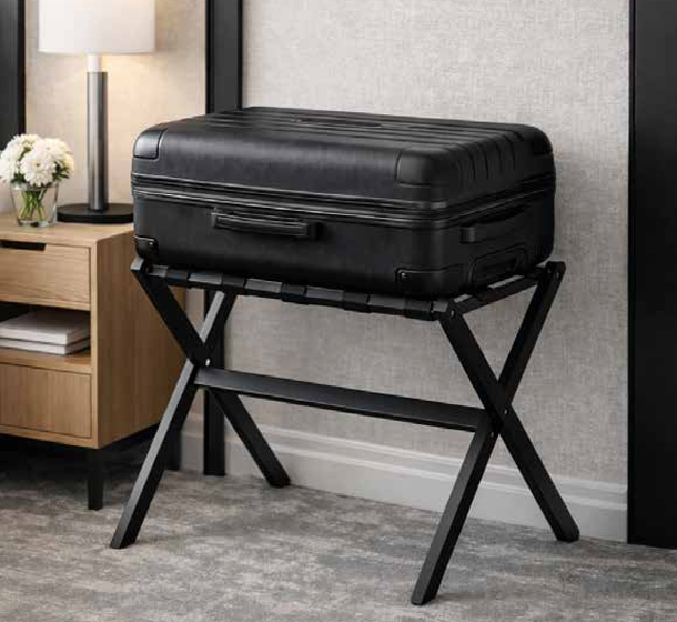 - Reggivaligia in legno con cinghie in nylon e piedini antiscivolo.